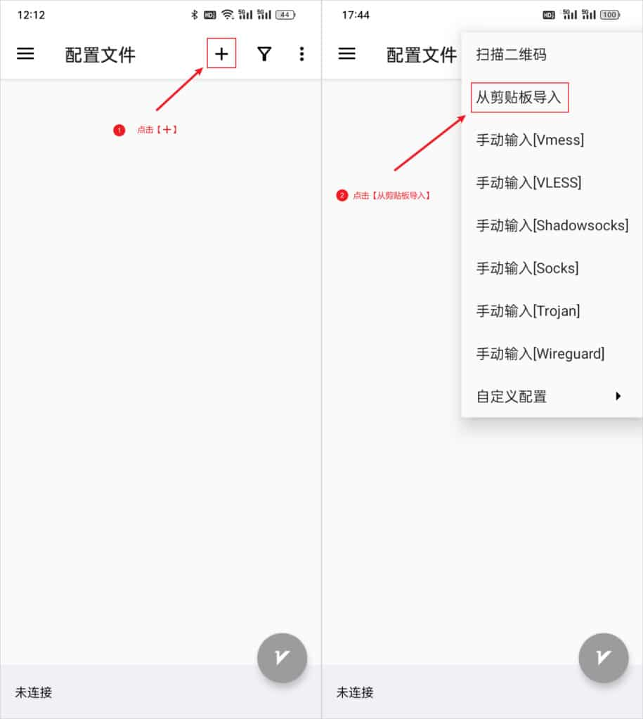 然后点击【➕】> “从剪贴板导入”。
